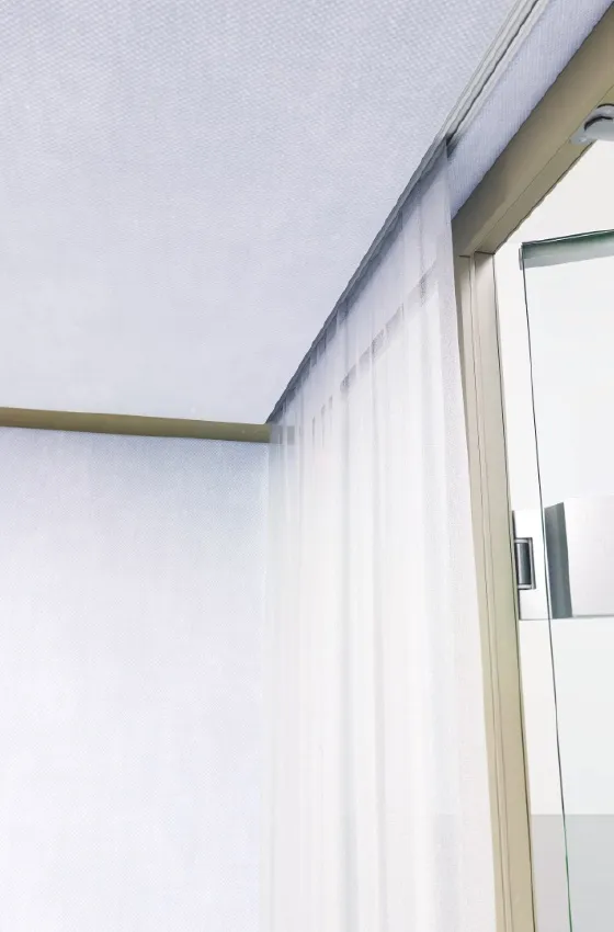 Für zusätzliche Diskretion gibt es vielfälitge Möglichkeiten von satinierten Glasfolierungen bis hin zu innenliegenden Vorhängen oder Rollos.